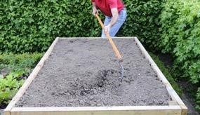 die Gründüngung wird der Boden im Hochbeet gelockert und mit organischer Masse